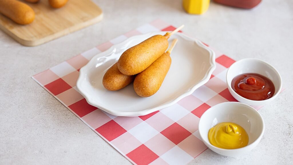 • ソーセージに串を刺し、衣がよく付くようにキッチンペーパーで水気を拭き取ります。